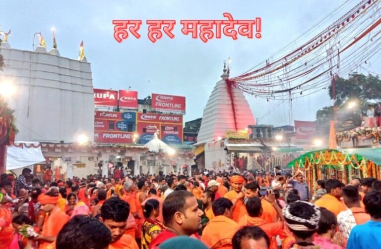 देवघर: आज 11 जुलाई से सावन का पावन माह शुरू हो गया है. पहले दिन ही देवघर स्थित बाबा धाम में आस्था का जन सैलाब उमड़ा है. पूरी बाबा नगरी बोल बम के जयकारों से गूंज उठी है. आज सुबह 4 बजे से ही बाबा बैद्यनाथ में श्रद्धालु जलार्पण कर रहे हैं. प्रशासन की ओर से श्रद्धालुओं की सुरक्षा के पुख्ता इंतजाम किये गये हैं. श्रद्धालु सुगम व सुरक्षित तरीके से अरघा के माध्यम से बाबा को जलार्पण कर रहे हैं.