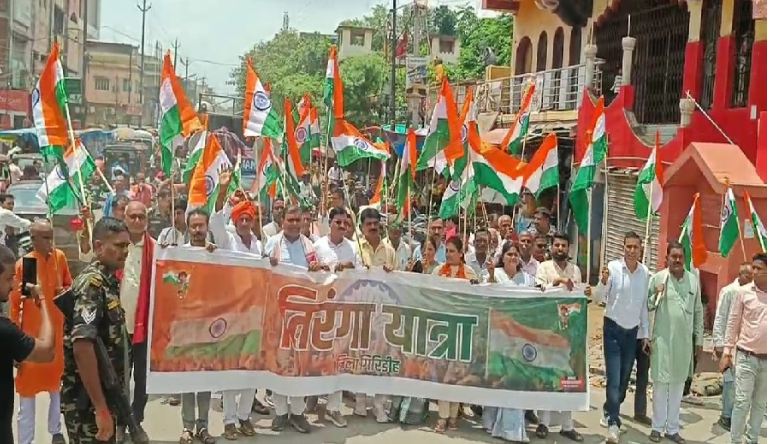 गिरिडीह…हर घर तिरंगा अभियान के तहत रविवार को भाजपा की ओर से शहर में भव्य तिरंगा यात्रा निकाली गई। झंडा मैदान से आरंभ हुई इस यात्रा में 77 मीटर लंबा तिरंगा प्रमुख आकर्षण रहा, जिसे थामे सैकड़ों कार्यकर्ता भारत माता की जय और वंदे मातरम के नारों से पूरा शहर गुंजायमान करते रहे।यात्रा टावर चौक, मकतपुर चौक, कालीबाड़ी चौक सहित विभिन्न मार्गों से गुजरते हुए बड़ा चौक पर संपन्न हुई। इस दौरान भाजपाइयों ने राहगीरों और स्थानीय लोगों को तिरंगा भेंट कर स्वतंत्रता दिवस पर अपने-अपने घरों में तिरंगा लगाने की अपील की।कार्यक्रम में मौजूद कार्यकर्ताओं ने कहा कि आजादी के 78 वर्ष पूरे हो चुके हैं और यह तिरंगा यात्रा वीर शहीदों के बलिदान को याद करने, उन्हें श्रद्धांजलि देने और लोगों में देशभक्ति का भाव जागृत करने का प्रतीक है। साथ ही सभी से आजादी का अमृत महोत्सव मनाने की अपील की गई। मौके पर जमुआ विधायक मंजू कुमारी, भाजपा जिलाध्यक्ष महादेव दुबे, सांसद प्रतिनिधि दिनेश यादव, शालिनी बैसखियार, कामेश्वर पासवान समेत बड़ी संख्या में कार्यकर्ता मौजूद रहे।