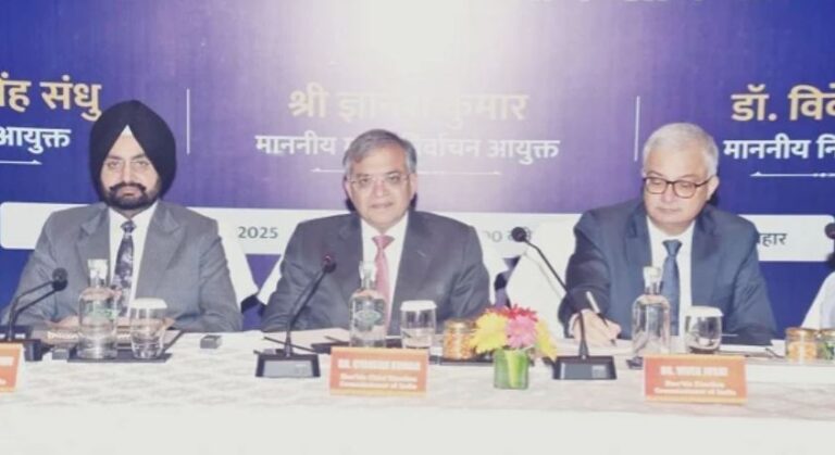 राज्य निर्वाचन आयुक्त ने एक्स पर बैठक की तस्वीरें शेयर करते हुए लिखा, ” मुख्य चुनाव आयुक्त श्री ज्ञानेश कुमार की अध्यक्षता में चुनाव आयुक्त डॉ. सुखबीर सिंह संधु एवं चुनाव आयुक्त डॉ. विवेक जोशी, बिहार के मुख्य चुनाव अधिकारी श्री विनोद गुंजियाल तथा आयोग के वरिष्ठ अधिकारियों के साथ बिहार के सभी 12 मान्यता प्राप्त राजनीतिक दलों के साथ चर्चा शुरू हुई।”
