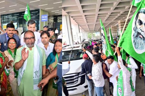 झारखंड…झारखंड के मुख्यमंत्री हेमंत सोरेन (CM Hemant Soren) आज सोमवार को बिहार की राजधानी पटना (Patna) पहुंचे. यहां सीएम राहुल गांधी और तेजस्वी यादव के वोटर अधिकार यात्रा में शामिल होंगे.पटना एयरपोर्ट पर पहुंचते ही सीएम का जोरदार स्वागत हुआ. JMM कार्यकर्ताओं ने सीएम को माला पहनाकर और बुके देकर स्वागत किया. इस दौरान एयरपोर्ट पर बड़ी संख्या में झामुमो कार्यकर्त्ता पार्टी का झंडा लिए नजर आये.