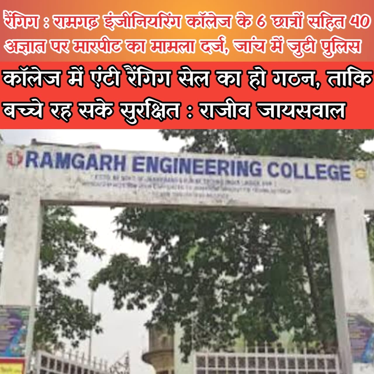 रामगढ़ इंजीनियरिंग कॉलेज में जूनियर छात्र ऋशु कुमार गुप्ता के साथ रैगिंग और मारपीट मामले में
