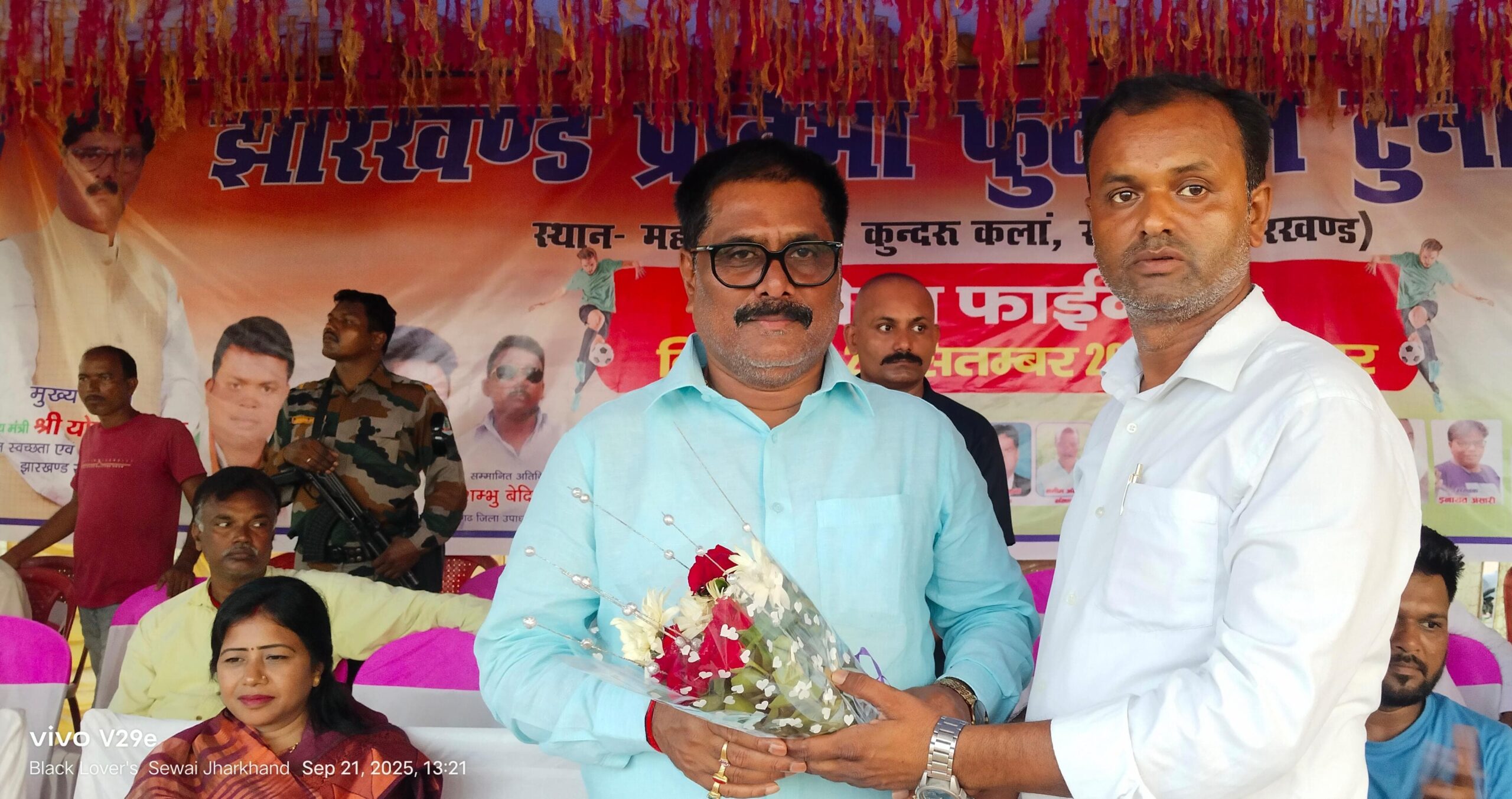 कुंदरुकलां स्थित महथा बगीचा में चल रहे झारखंड प्रतिभा फुटबॉल टूर्नामेंट का रविवार को भव्य समापन किया गया। फाइनल मुकाबला मुंडा ब्रदर्स बारलोंग बनाम पंड्या इलेवन कुंदरूकलां के बीच खेला गया। जिसमें बारलोंग की टीम ने बेहतर खेल का प्रदर्शन करते हुए कुंदरूकलां की टीम को 4 – 3 से हराकर खिताब पर कब्जा जमाया। बेहतर खेल के लिए विक्रम कुमार को मैन ऑफ द मैच व सुनील उरांव मैन ऑफ द सीरीज का खिताब मिला। इस दौरान मुख्य अतिथि के रूप में मौजूद पेयजल स्वच्छता मंत्री योगेंद्र महतो व विशिष्ट अतिथि रामगढ़ विधायक ममता देवी, दुलमी 20 सूत्री अध्यक्ष सुधीर मंगलेश, झामुमों नेता शंभु बेदिया द्वारा विजेता टीम को 41 हजार व उप विजेता टीम को 31 हजार उपहार स्वरूप दिया गया। साथ ही दोनों टीम को ट्राफी भी दिया गया। मौके पर मुख्य अतिथि ने कहा कि टूर्नामेंट से ग्रामीण क्षेत्र के खिलाडियों को उभरने का मौका मिलता है। खिलाड़ी बेहतर प्रदर्शन कर क्षेत्र व राज्य का नाम रौशन करें। सरकार खिलाडियों को प्रत्साहित करने के लिए बेहतर कार्य कर रही है। तत्पश्चात आयोजन समिति के सदस्यों ने अतिथियों का जोरदार स्वागत किया। इससे पूर्व फाइनल मैच का उदघाटन अतिथियों द्वारा खिलाड़ियों से परिचय प्राप्त कर किया गया। मौके पर रामगढ़ 20 सूत्री सदस्य हीरालाल महतो, आयोजन समिति के अध्यक्ष दिगंबर गुप्ता, संरक्षक निरंजन बेदिया, इनायत अंसारी, सुनील मेहता, झलकु बेदिया, शमीम अंसारी, सचिव रंजीत करमाली, कोषाध्यक्ष खेमन महतो, कुलदीप करमाली, बिनोद करमाली, शैलेंद्र महतो, कमलेश बेदिया, छोटेलाल कुमार, डॉ एस अनवर, सज्जाद अंसारी, कौशर अंसारी, त्रिभुवन महतो सहित कई मौजूद थे।